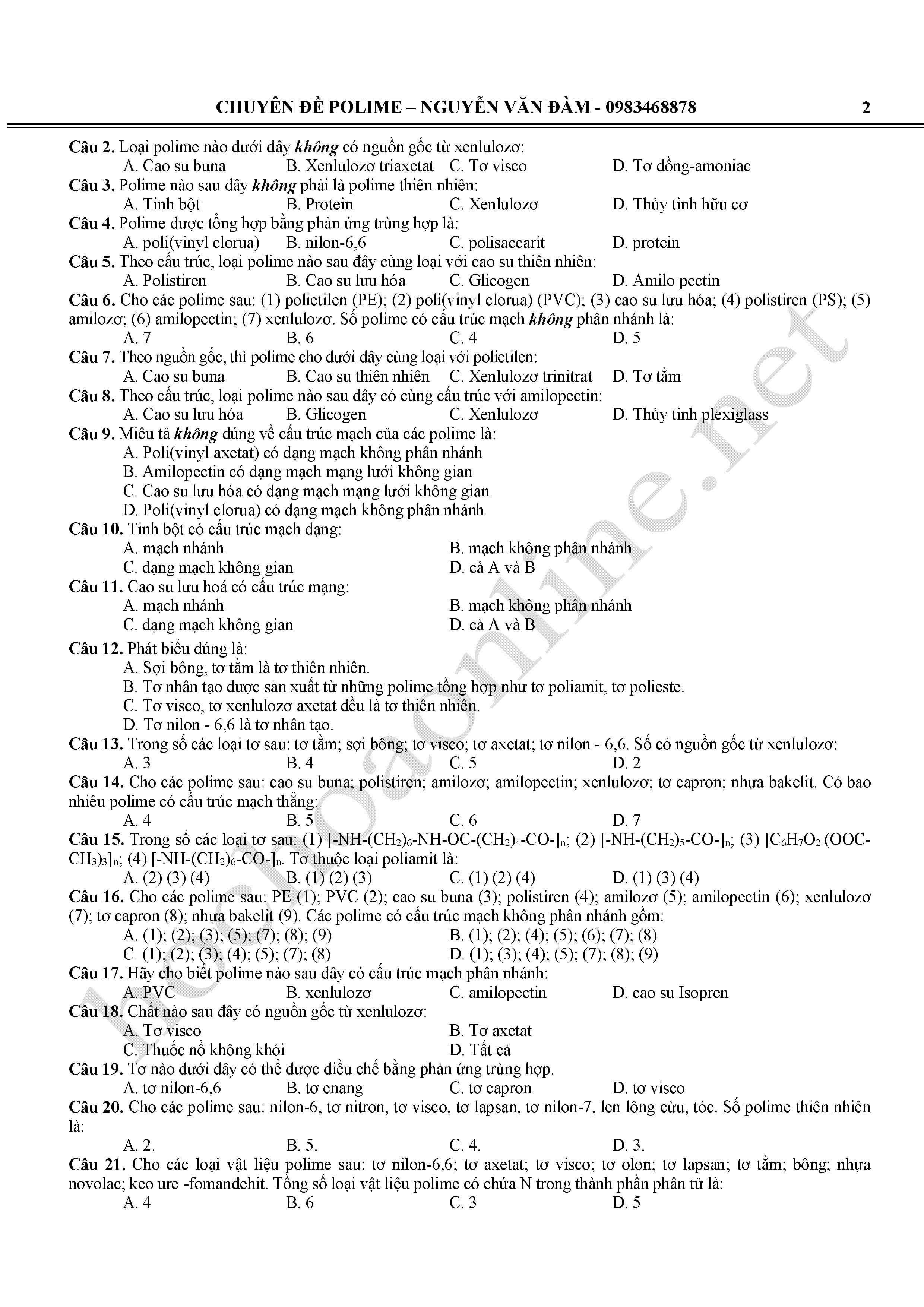Chú ý phân biệt mạch polime chứ không phải mạch cacbon.